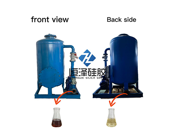 Фильтрующий бак всегда работает с отбеливающим песком с силикагелем, чтобы отбелить цвет дизельного топлива, он может превратить черное или красное дизельное топливо в чистый цвет.